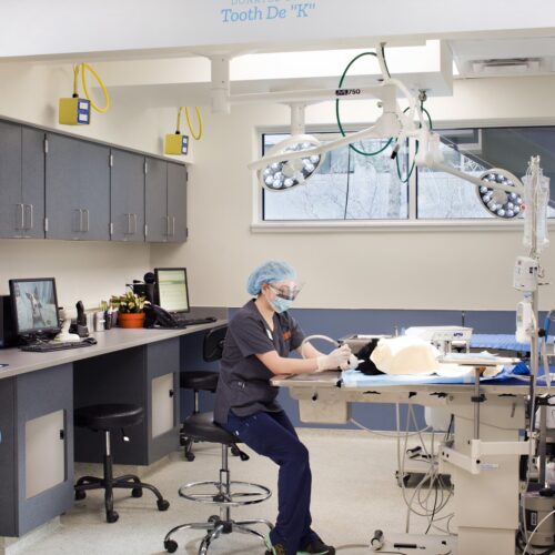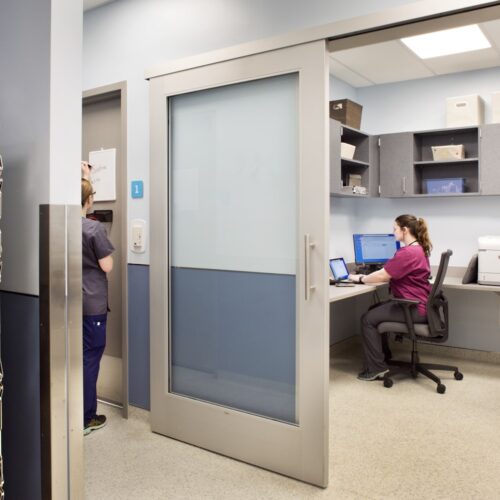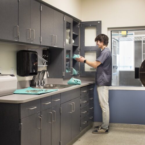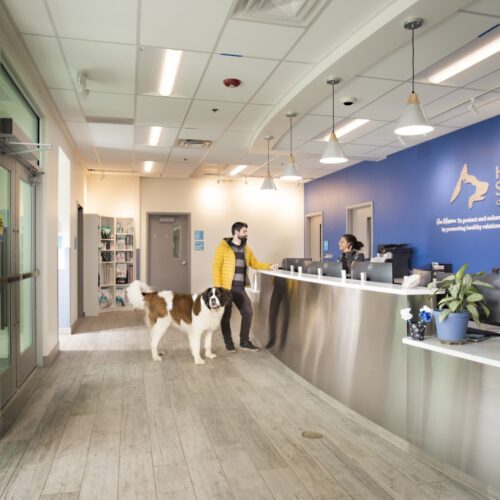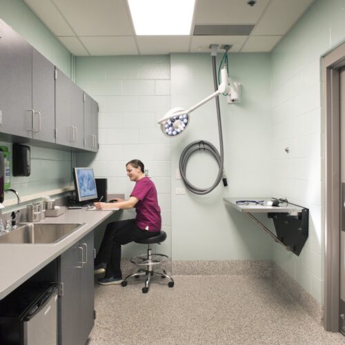 Animal Arts recently completed a renovation to the 3,641 square-foot clinic, with an addition of 1,784 square feet to better support the veterinary services. HSBV established a temporary clinic in the second-floor training space to continue providing veterinary services during the construction.