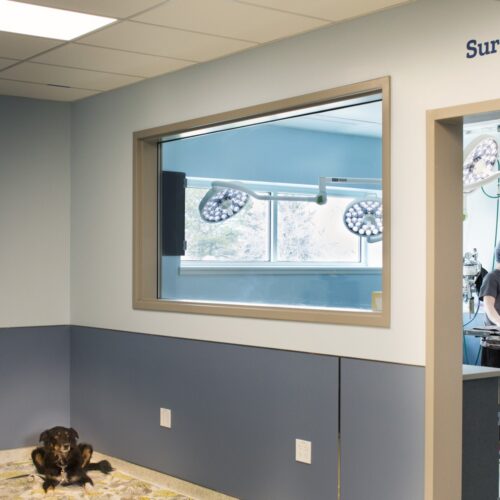 The renovation added three exam rooms and new waiting areas, allowing for dog and cat species separation. A larger, three-table surgery replaced the existing suite and a new pack/prep adjacent to surgery was added to provide more efficiency for staff. Treatment is now also separated by species to provide a Fear Free® experience for the animals.